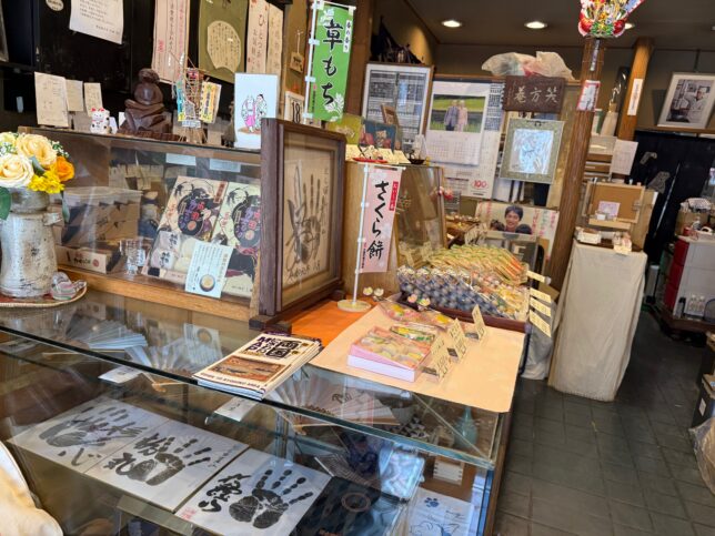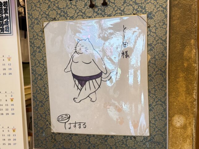 店内に入りました。ディスプレイにはお相撲さんの手形サインが飾られていました。地域柄が出ますね。