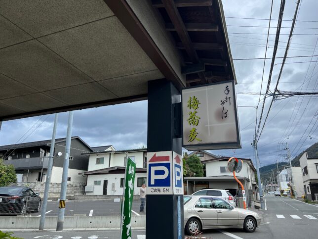 という、手打ちそば 梅蕎麦さんの外観です。住宅の角地にあります。
