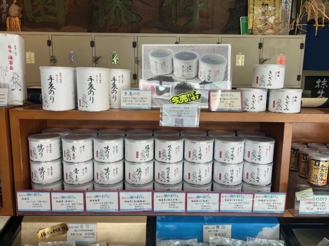 店内に入りました。様々なバリエーションの海苔が販売されています。おしゃれなのも多くて、迷っちゃいますね。