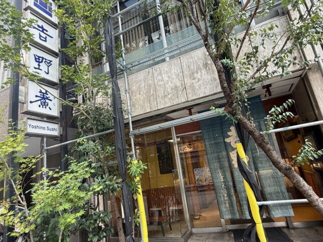 という吉野鯗さんの外観です。訪問時はちょうど外観を直すためなのか足場が組まれていました。これはこれで貴重な写真だよね、ということで。