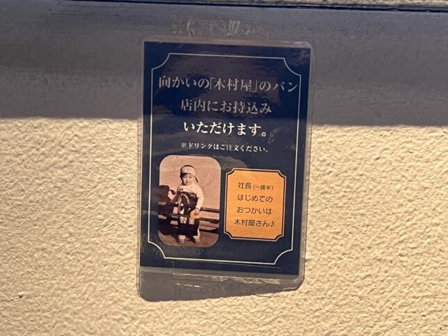 ちなみに、向かいにある「木村屋」さんのパンの持ち込みが可能だそうですよ。