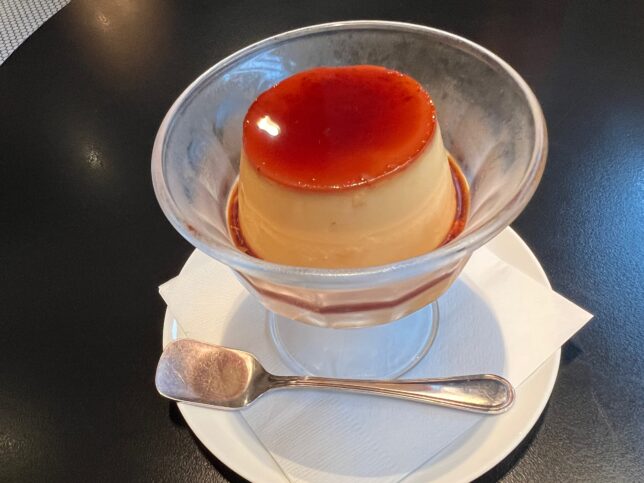 プリンはレトロ風のやや硬めでした。昔ながらの実直な味。