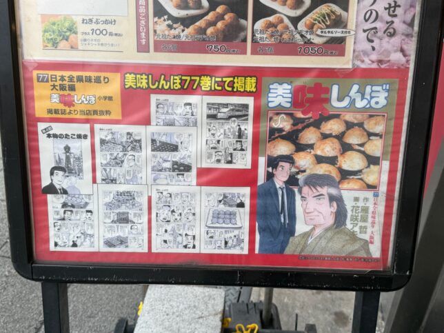 看板下部には美味しんぼに掲載されたお話が。77巻だそうですよ。