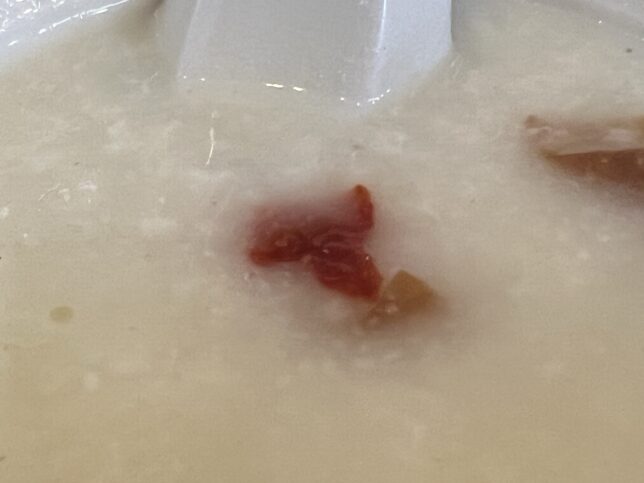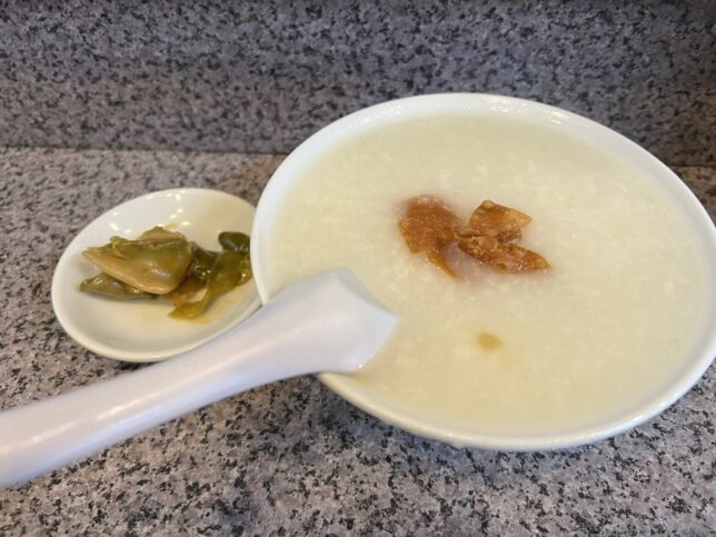 そして、中華粥です。上に揚げたワンタンが乗っています。3回に分けて炊いているそうですよ。