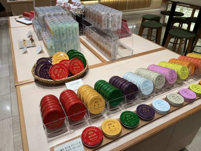こちらは代表銘菓の1つ榮太樓飴です。色んなフレーバーがあって、缶がとにかく可愛いのです。