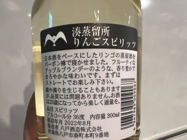 という、八戸酒造さんのりんごスピリットを購入しました。ブランド的にはMINATO DISTILLERY(ミナト・ディスティラリー)というラインとなります。りんごスピリットは、りんご王林で作ったお酒を蒸留しバーボン樽で寝かせています。