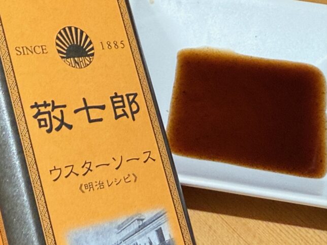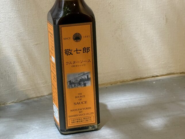 という、阪神ソースさんの敬七郎ウスターソースを購入しました。創業者の名前を冠した、明治30年当時のレシピをベースに作られています。 使われている写真含めて、どっしり感があって良い。