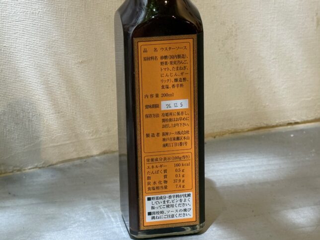 ボトルの裏側です。原材料は砂糖・野菜・果実(りんご・トマト・たまねぎ・にんじん・ガーリック)・醸造酢・食塩・香辛料です。