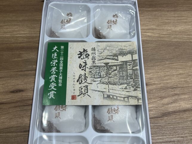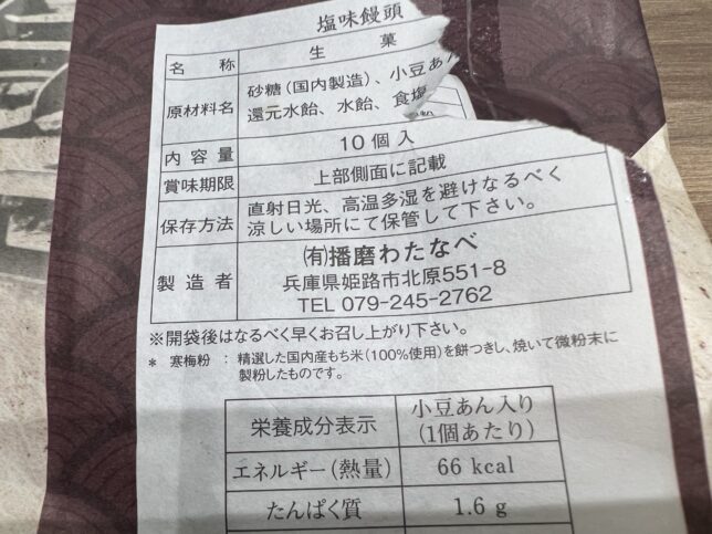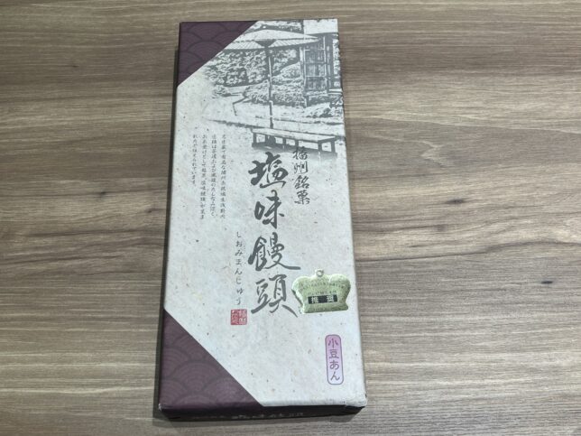 という、播磨わたなべさんの塩味饅頭がこちらです。播州銘菓と書かれています。