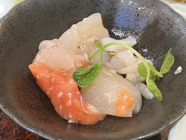 そして塩辛です。この形式で食べるの初めて。お刺身を麹的な何かで揉み込んであります。旨みが増していてお酒が進む味でした。