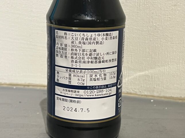 原材料は青森県産の大豆・小麦と、国内製造の食塩です。こだわっていますね。 醤油だけで作ったと思えない味わいの深さがあってとても美味しい。これは調味料使いするのは勿体無いな。