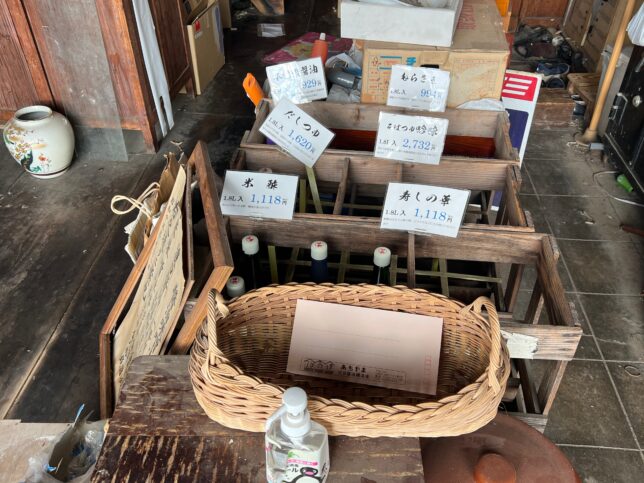 店内に入りました。地元の方向けの商品なので基本がリッターオーバーのサイズになります。蔵での直接販売のみで小売りをしない、近隣の方向けのお醤油屋さんとのこと。