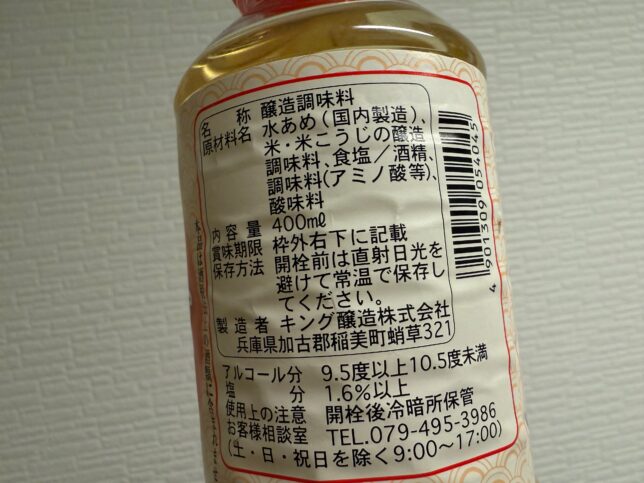 アップでどうぞ。みりんタイプであって味醂ではないです。