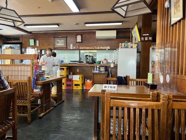 店内に入りました。昔ながらの食堂感があってとても良い。トイレと書かずに、洗面所としている点も萌えポイントですね。