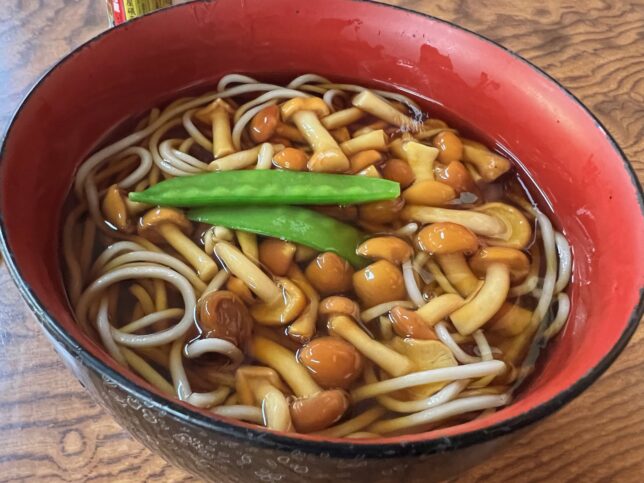せっかく長野にいるので、山の恵みと合わせたいなと、なめこ蕎麦をチョイスしました。