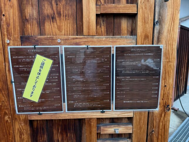 カフェでもあるので、ドリンク・スイーツ・フードメニューもあります。ライダーの方も来るので、ソフトドリンクが乗っています(日本酒メニューも別途あり)。