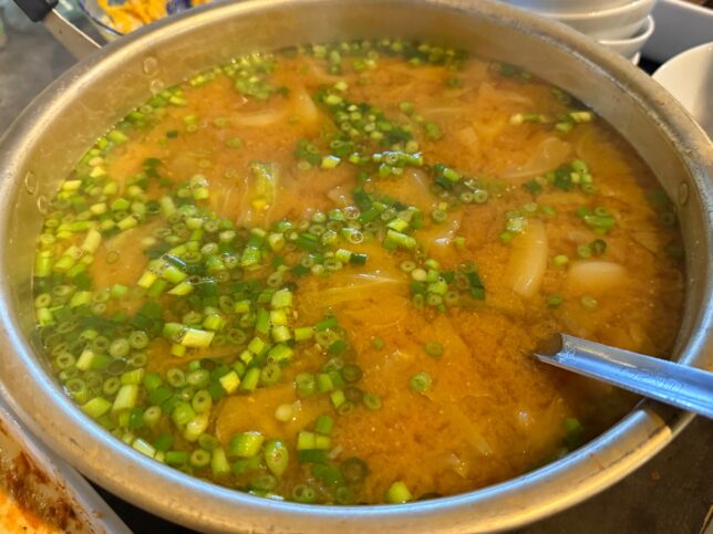 Foodist Linkの大雅シェフに味噌汁を作ってもらいました。味噌の旨味が強って、すごく美味しい。良いなぁ、このお味噌汁。
