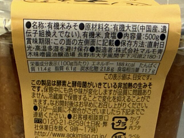 今回非加熱タイプの味噌を探す過程で、マルモ青木味噌醤油醸造場の商品を発見しました。ウェブを見るとほとんどが非加熱のようなので、すごいこだわりですね。こういう昔ながらのお味噌大好きなので、また買ってみたい。