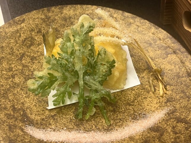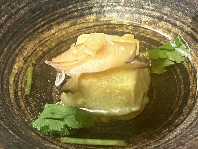 先付は胡麻豆腐の揚げ出し。上に乗ってるのはアワビです。