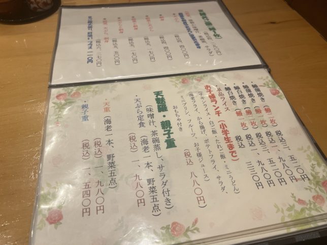 鰻がメインですが、天ぷらや親子中などもあります。お子様ランチがあるのも良いね。