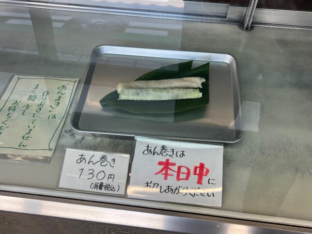 こちらが名物の一つ、ういろですね。 そしてもう1つの名物・あん巻きです。こちらは日持ち当日中、そして作り置きはなく、オーダーしてから巻いてくれる感じです。