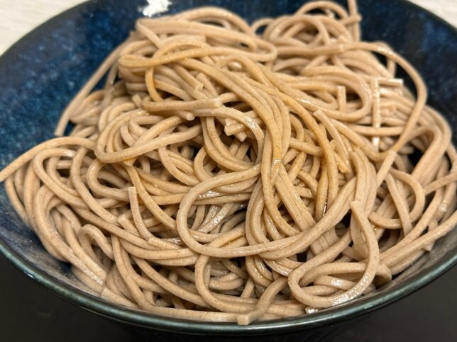 茹でた図です。少し太めの田舎そば的な味の強い風味を楽しむお蕎麦です。