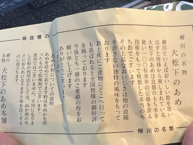 紙も入っていました。100余年の伝統とあるので、結構前に作ったやつなのかな。