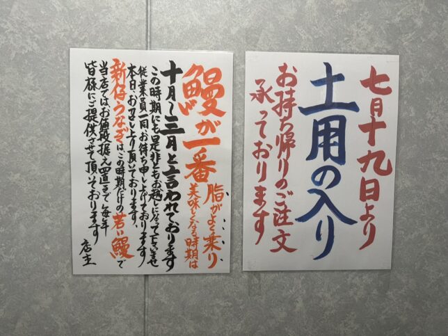 夏訪問だったので、土用丑の日の張り紙も。その隣には鰻の旬は十月〜三月なので、この時期来てね、とも。結局のところは、いつだって食べようぜ、鰻な気はしています。