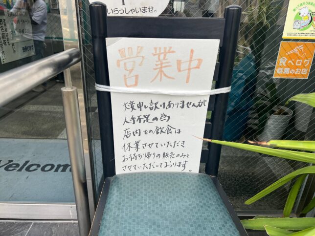 その旨は店頭の看板に書かれていました。人手不足が原因とのこと。