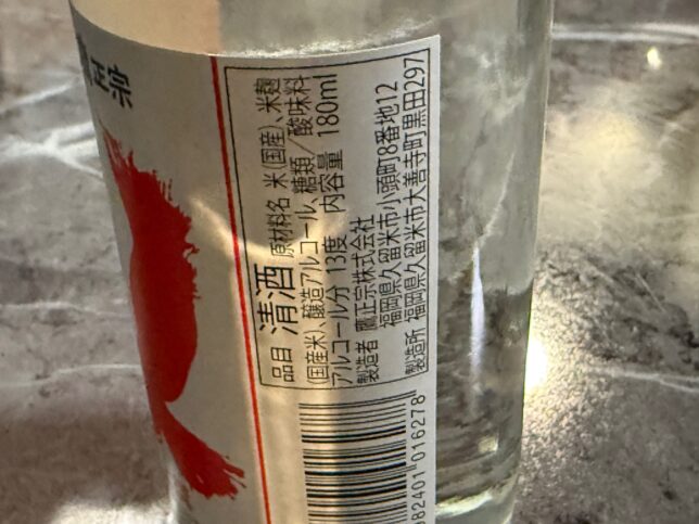 ラベル横です。原材料は国産の米・米麹・醸造アルコール・糖類となります。