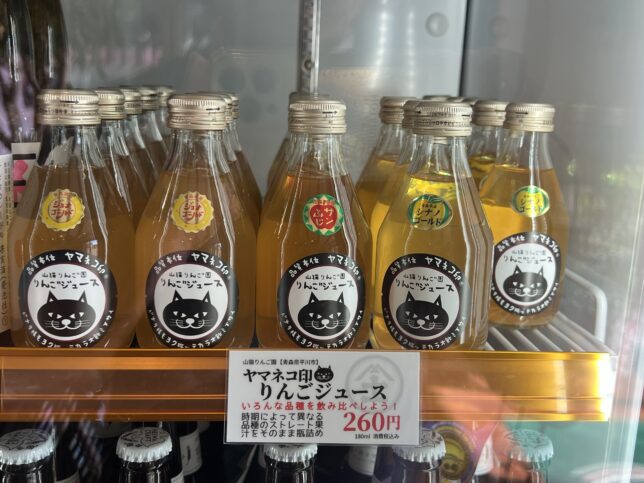 青森のリンゴジュースも。品種ごとにジュースになっているの、めっちゃ良いな。