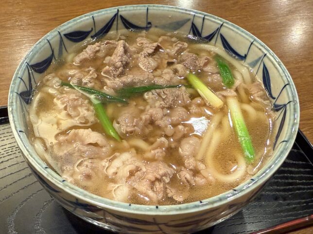 私は肉うどんをオーダー。柔らか麺、甘辛い肉、出汁の味が最高に良かった。