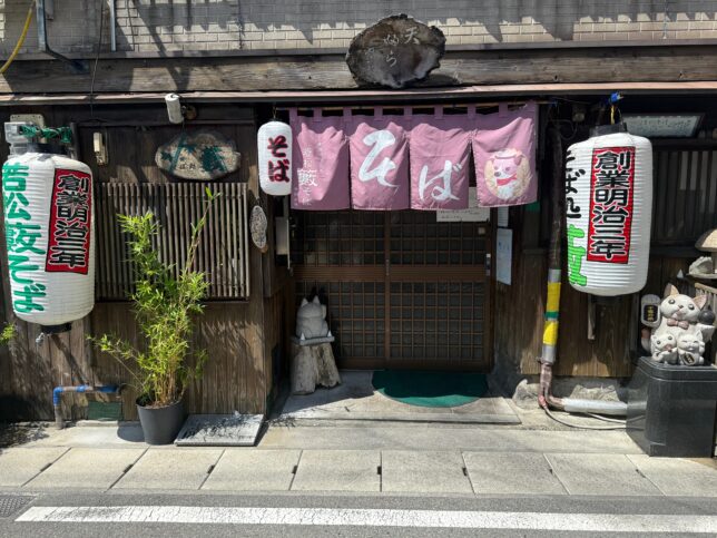 という、若松籔そばさんの外観です。創業明治三年の提灯がインパクトあって良いですね。