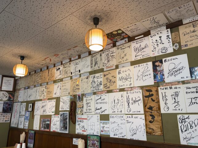 店内に入りました。ものすごい色紙の数です。天井まで貼られているのは初めて見たかも。