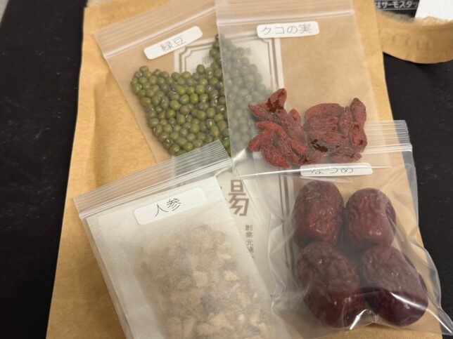 中身を取り出すとこんな感じです。なつめ・朝鮮人参とか料理で使うの人生初だな。